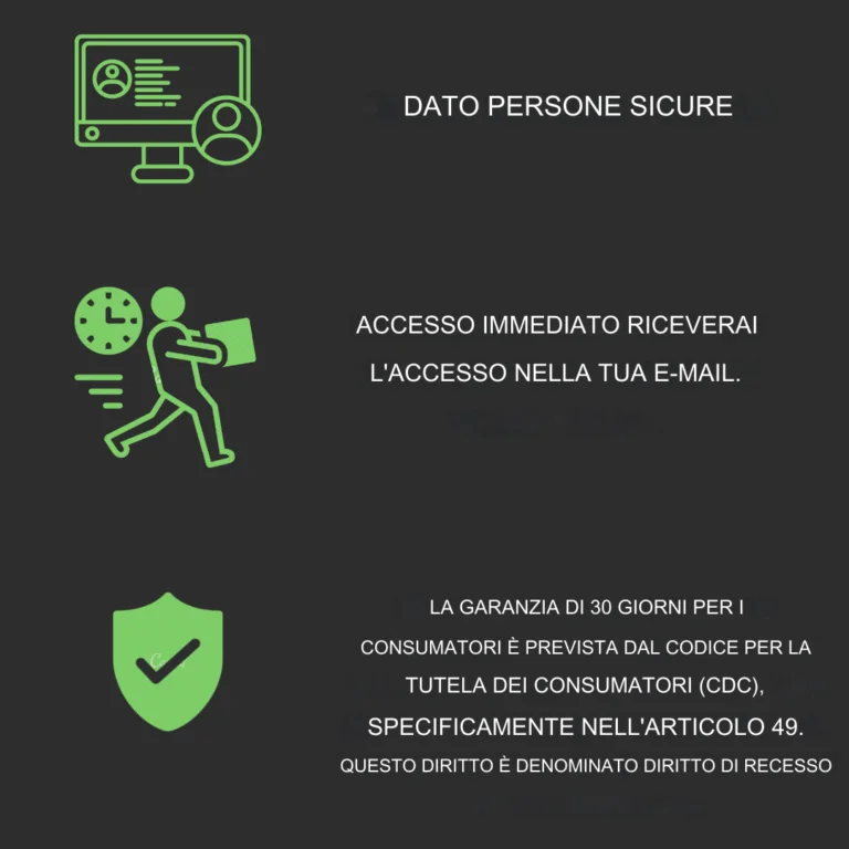 Dopo aver effettuato l’ordine, riceverai un’email con tutti i dati e le informazioni per accedere alla tua area riservata.